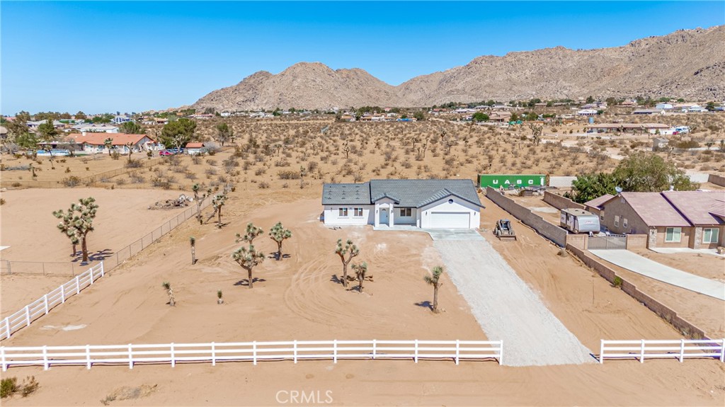 Built in 2024!! BRAND NEW CUSTOM BUILT HOME ON 1 ACRE PANORAMIC VIEW LOT!! Home has expensive 9 foot tall and 2×6 construction with extra insulation. Home will include paid off solar system to help with energy saving. Located in desirable Sycamore Rock area of Apple Valley. A well known area to have larger homes with larger land and breathtaking view all around. Subject home has 4 spacious bedrooms, 2 full bathrooms, 1617 square feet of living space and a spacious about 500 square feet of 2 car attached garage. About an acre lot with pristine view of the Victor Valley and Mount Baldy at the background. Front porch has the million dollar twinkling city light view at night. Custom glass inserted front door opens to a GREAT ROOM with living room, dining area and kitchen. This absolutely gorgeous kitchen comes with expensive Calcutta Quartz counters, modern kitchen cabinetry with soft closing hinges, huge walk-in pantry, huge center island with designer hanging bar lights, deep stainless steel sink with pull down faucets. Seller including all stainless steel appliances with the home (Refrigerator, Stove, Oven, Microwave and Dishwasher. Formal dining area next to kitchen has modern light fixture and a glass door to the back yard. SPLIT FLOOR PLAN!! Primary bedroom is away from other 3 bedrooms and provide privacy. In-house laundry area. All bedrooms are large enough to hold king beds with decent closet spaces. Common bathroom is exceptionally larger with double sinks, tub and shower. Primary bedroom has very large walk-in closet, and picture window. Primary bathroom offers separate tub and shower, extra long counter with 2 sinks and still vanity room. The interior of the garage has been fully finished with drywall. The tankless water heater is located inside the garage. Back way to 15 freeway make this is an excellent area for commuters commuting from Fort Irwin base or Barstow area. Purchase includes a long term builder warranty. A BUYER MUST SEE THIS BRAND NEW HOME BEFORE BUYING ANY HOME!!