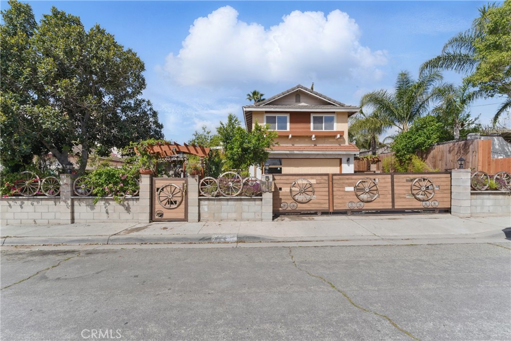 HOME SHOWS PRIDE OF OWNERSHIP! This gorgeous 4 bedroom, 2.5 bath home has 1,363 of living space. The 2 car attached garage has tiled flooring, insulated and glass inserted garage door. 5500 square feet larger lot. There is an additional 344 square feet of living space which was converted professionally by enclosing the patio; has 24-inch custom tile flooring, windows, and door to the back yard. Next to the enclosed patio, there is 144 square feet of outdoor kitchen. The enclosed patio and outdoor kitchen are great for family gathering or entertaining. Seller has done tons of upgrades including: newer HVAC system and Water Heater!! Custom made western style electric sliding gate with smaller entry gate next to it. The lovely front garden, large and raised front covered porch with faux vines and hanging grapes from ceiling provides cozy and comfortable atmosphere. Custom front door opens to the large living room with 14 feet high ceiling, floor to wall stacked stoned fireplace, decorative wood wall, and a huge double sliding door to the enclosed patio. Completely remodeled modern kitchen also has stacked stone accent, expensive/durable quartz counter tops with glass mosaic backsplash, stainless steel appliances, modern dark stained cabinetry and custom light fixtures. Dining area offers a butler pantry, and gorgeous hanging chandeliers. Remodeled 1/2 guest bathroom downstairs for convenience. Gorgeous staircase to 2nd floor leads to all the bedrooms. Roomy and larger Primary bedroom has high cathedral ceiling, larger closet, and large window. Completely remodeled primary bathroom offers double sinks, upgraded faucets, modern cabinets, tub with custom tiled walls. 3 other bedrooms are good size with ample closet spaces. The hallway bathroom also was remodeled with double sinks, upgraded faucets, modern cabinets, tub with custom tiled walls. Laminated wood flooring, ceiling fans, upgraded light fixtures, window coverings throughout the home. The roomy back yard has 2 larger storage sheds, covered dog runs and still has enough room for a future pool! Extra concreted side yard offers extra parking. A well put together home for a new buyer to move in and enjoy!! COME AND SEE THIS HOME TODAY!!